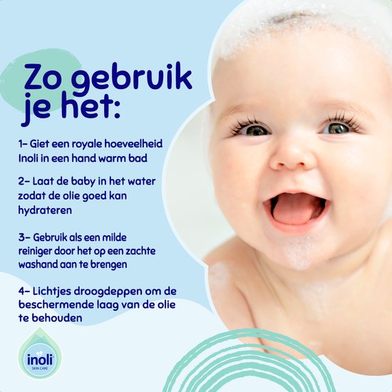 Maak van badtijd een heerlijk verzorgend moment met de Inoli Skin Care Badolie. Deze intensief voedende olie is speciaal ontwikkeld voor baby’s met een droge en gevoelige huid en helpt de huid te beschermen, hydrateren en verzachten. Zo geniet je kleintje niet alleen van een leuke badervaring, maar ook van een optimaal verzorgde huid.