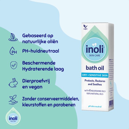 Inoli Skin Care Badolie – Droge en Gevoelige Huid – Met 6 Voedende 100% Natuurlijke Oliën – pH Huidneutraal – 200 ml.